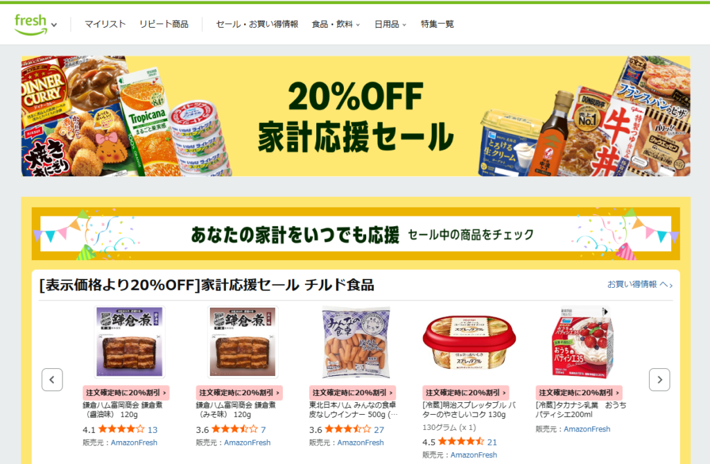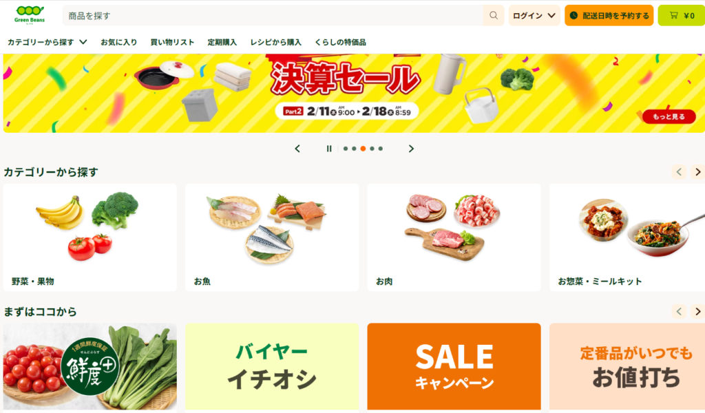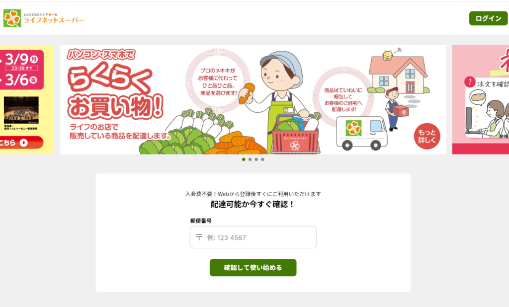 プライム会員向けの生鮮食品宅配サービス。注文の手軽さは抜群ですが、エリア限定のため利用可能地域が限られます。