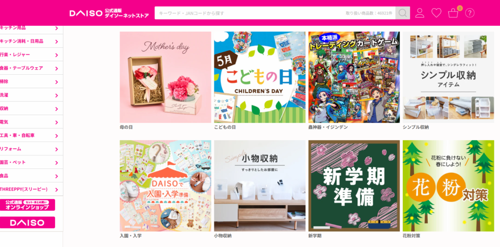初心者には商品数が多いダイソーネットストアがおすすめです。